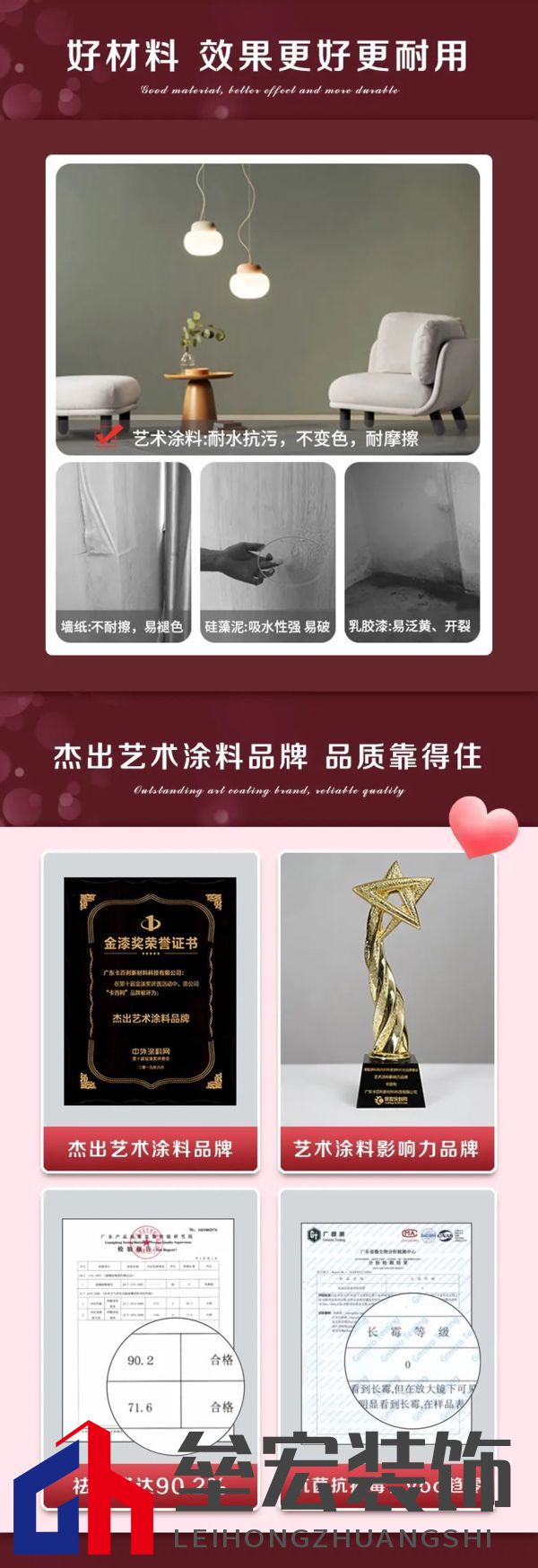 品質保證 意大利卡百利藝術涂料·軟裝產品官方檢測報告顯示祛甲醛率達90.2%,抗菌抗病毒雙核引擎加持,voc趨0,為您和您的家人健康保障護航;此外多項榮譽加冕,深受業(yè)界認可和消費者青睞,品質有保證。多款走心爆品藝術涂料好禮,讓你為愛筑造一個健康安全的家。畢竟健康是幸福的最基本前提,呵護TA的健康,唯愿幸福之花永恒綻放!