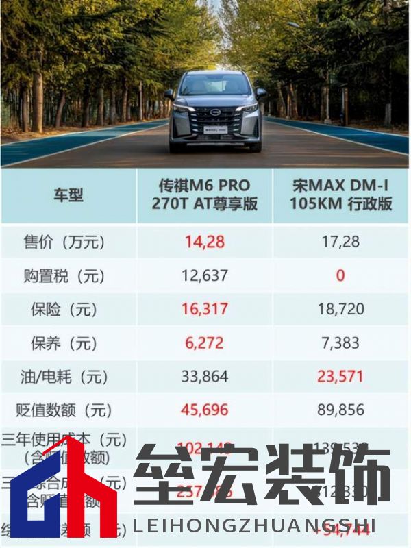 ??綜合成本大比拼,超高性價(jià)比的家用MPV竟然是? ??抵達(dá)六環(huán)最終目的地后,總共的里程是160公里,我們結(jié)合兩車的油耗數(shù)據(jù)進(jìn)行了最后的綜合成本大比拼。購(gòu)買家用MPV,除了動(dòng)力空間的考量,往往還需綜合考慮到日常油電耗、保值率、保險(xiǎn)等綜合用車成本的要素。從綜合客觀的角度出發(fā),我們對(duì)兩車三年內(nèi)六萬(wàn)公里的用車成本進(jìn)行計(jì)算統(tǒng)計(jì)。首先,兩款車在購(gòu)車成本上:傳祺M6 PRO 270T AT尊享版的價(jià)格為142800元,價(jià)格比比亞迪宋MAX DM-i 105KM行政版的172800元更加親民實(shí)惠。