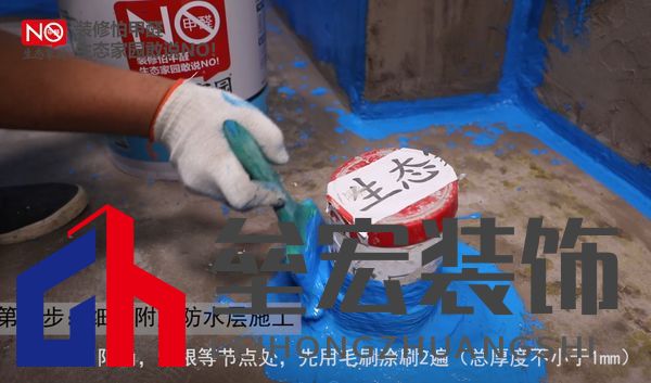 陰陽角,管根等節(jié)點(diǎn)處,先用毛刷涂刷2遍涂料(總厚度不小于1mm); 第四步 大面積涂 膜防水層施工