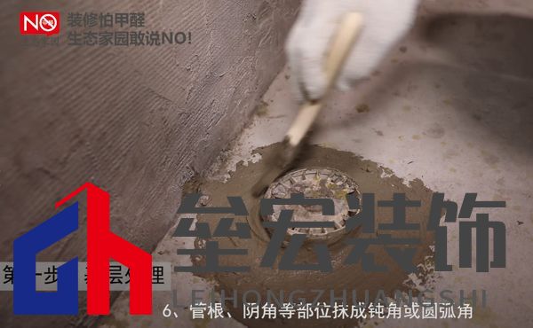 1、液料:粉料=10:27(重量比),一袋液料配兩袋粉料; 2、先倒液料,在攪拌的同時(shí)緩緩加入粉料; 3、用電動(dòng)攪拌器攪拌至均勻、無結(jié)塊; 第三步 細(xì)部附加 防水層施工