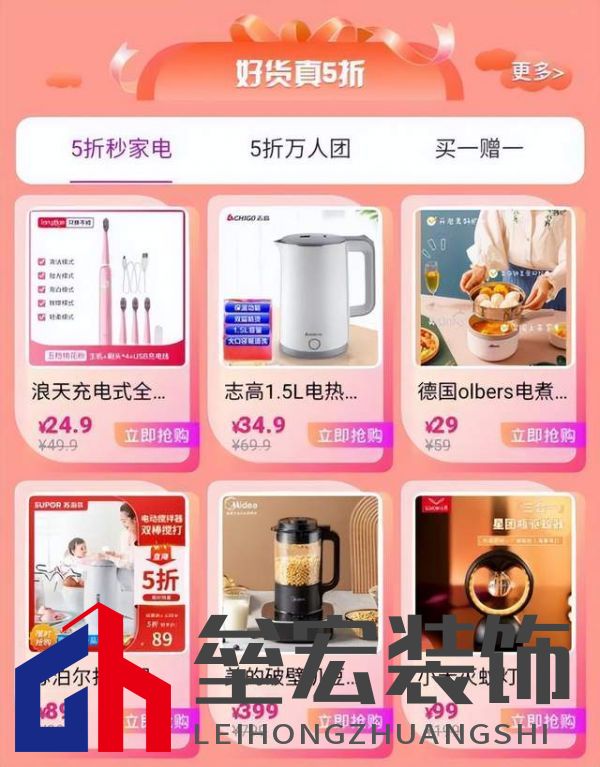 ??好貨真5折 美的多功能破壁機直降400 ??進入好貨真5折專區(qū),各種半價商品一目了然,5折大牌家電、5折萬人團、還有買一贈一專區(qū),花一份錢輕松解鎖雙份快樂,件件超值,閉眼可入。 ??小家電方面,美的多功能破壁機一機多用,夏天用來打豆?jié){打果汁還是給寶寶做輔食皆可,原價799元,直降400元,只要399元就能輕松變身料理達人。志高1.5L電熱水壺,原價69.9元,活動價僅需34.9元。 ??居家好物怎么選?夏天容易出汗,紙巾消耗蹭蹭UP!國美真選嬰兒濕紙巾,無酒精、無甲醛、無熒光劑,食品級親膚配方,用來擦屁屁擦嘴巴皆可。一包原價14.9元,直降8元,6.9元樂享;健身好伴侶,國美真選無繩鋼絲跳繩,智能計數(shù),負(fù)重燃脂,原價79.9元,搶購價僅39.9元,助你跳出夏日好身材。