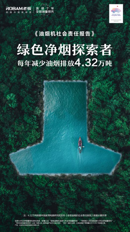 在環(huán)境責(zé)任承擔(dān)上,針對(duì)烹飪油煙、大氣污染問題,老板科技大吸力油煙機(jī)采用多項(xiàng)控?zé)熂夹g(shù),達(dá)到節(jié)能減排的最大效果:雙腔雙吸,精準(zhǔn)垂直捕獲油煙;三面靈攏,防止油煙側(cè)逃;超薄近吸,從源點(diǎn)將油煙吸走。同時(shí),老板油煙機(jī)在油脂分離度指標(biāo)上達(dá)到96%-97%,經(jīng)估算,每年能夠減少油煙排放4.32萬噸。同時(shí)老板油煙機(jī)變頻電機(jī)的數(shù)字技術(shù)也使得電機(jī)磨損率更低,使用效率可高達(dá)78%,比傳統(tǒng)油煙機(jī)的電機(jī)提升了30%的效率,不但省電節(jié)能,還大大的提升了電機(jī)壽命。老板油煙機(jī)采用高壓靜電吸附耦合活性炭過濾技術(shù),能夠有效避免油煙逃逸,減少了烹飪對(duì)空氣環(huán)境的污染,用科技手段保護(hù)環(huán)境,達(dá)到經(jīng)濟(jì)效益與環(huán)保效益的最佳平衡。  在消費(fèi)者服務(wù)上,老板電器堅(jiān)持以用戶為核心,針對(duì)很多家庭老舊油煙機(jī)吸力不強(qiáng)帶來的油煙危害,老板開啟了一場“老板全民換新計(jì)劃”,呼吁人們及時(shí)告別家中的老化油煙機(jī),遠(yuǎn)離油煙危害,享受美好的廚房生活。