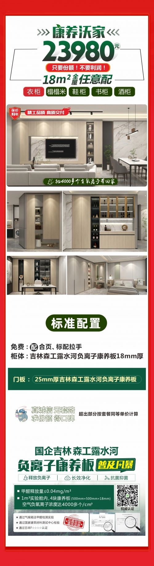 | 近日愛閣工房迎來自己的19周年大慶,此次慶典不僅有全新套餐和多項(xiàng)福利活動(dòng)推出,更有FM970女主播傾情助陣:全屋定制就選愛閣工房-康養(yǎng)沃家,門板和柜體均采用國企吉林森工露水河負(fù)離子康養(yǎng)板,可以把4000多個(gè)負(fù)氧離子帶回家,持久釋放負(fù)氧離子,長效凈化,抗菌抑菌。18㎡衣柜 鞋柜 酒柜 書柜 榻榻米全屋任意配,僅需23980元,讓家人擁有清新舒適的居家環(huán)境,健康得到保障,是家庭最大的財(cái)富。