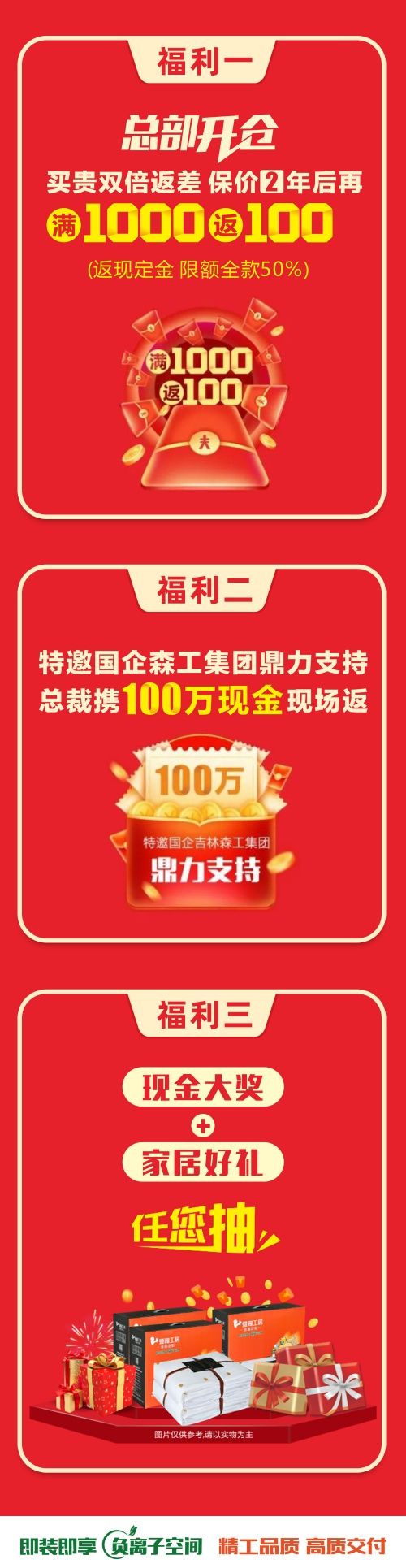 本月盛大啟動(dòng)19周年大慶,總部開倉直享出廠價(jià),保價(jià)2年后再滿1000返100,特邀國企吉林森工集團(tuán)鼎力支持,總裁攜100萬現(xiàn)金現(xiàn)場(chǎng)返,返現(xiàn)活動(dòng)正在如火如荼進(jìn)行,返現(xiàn)余額分秒遞減,返完即止。多重福利優(yōu)惠超值襲來,全屋定制就選愛閣工房!