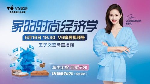 居然之家執(zhí)行總裁王寧錄制助力視頻 除線下門店活動(dòng)外,線上也福利不斷。在年中大促的節(jié)點(diǎn)上,6月16日-18日,在V6家居視頻號(hào)直播間,兩大品牌將進(jìn)行聯(lián)合直播,為廣大消費(fèi)者帶去海量超值好物、超多福利。 并且,6月16日晚,V6家居品牌大使、知名演員王子文也將空降直播間,與廣大粉絲朋友們見面聊天,共同探討如何學(xué)習(xí)《家的時(shí)尚經(jīng)濟(jì)學(xué)》。