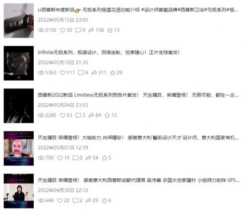 | 自西普斯新品「Infinite無極系列」正片全球首發(fā)圓滿收官以來,熱度仍在持續(xù)。  除此之外,本次新品發(fā)布會(huì)備受業(yè)界的關(guān)注,目前已有眾多媒體全方位大量報(bào)道,各大行業(yè)新聞媒體為西普斯衛(wèi)浴新品正片發(fā)布強(qiáng)力打CALL! 部分媒體報(bào)道  ▲報(bào)道發(fā)布會(huì)的媒體:新衛(wèi)浴網(wǎng)、搜狐網(wǎng)焦點(diǎn)網(wǎng)、騰訊網(wǎng)、網(wǎng)易、新浪網(wǎng)、第一設(shè)計(jì)網(wǎng)、中國(guó)設(shè)計(jì)網(wǎng)、中國(guó)設(shè)計(jì)聯(lián)盟網(wǎng)、設(shè)計(jì)TOP、中華家居網(wǎng)、華南家居網(wǎng)、今日頭條、知乎、百家號(hào)、搜狐網(wǎng)、一點(diǎn)資訊等媒體均轉(zhuǎn)發(fā)報(bào)道。  ?無極系列在西普斯官方視頻號(hào)的點(diǎn)擊觀看數(shù)據(jù),點(diǎn)贊數(shù)據(jù)以及轉(zhuǎn)發(fā)數(shù)據(jù) 高能霸屏熱點(diǎn)持續(xù)          意大利西普斯衛(wèi)浴自1965年創(chuàng)立,經(jīng)過57年的沉淀與積累,是國(guó)際頂級(jí)的五金衛(wèi)浴代表品牌。在滿足消費(fèi)者對(duì)衛(wèi)浴產(chǎn)品的需求同時(shí),更加追求產(chǎn)品與空間美學(xué)的契合度,以及產(chǎn)品所帶來的輕奢感與舒適感。對(duì)產(chǎn)品細(xì)節(jié)的嚴(yán)格把控和對(duì)品質(zhì)的極致追求,不但獲得了用戶的高度認(rèn)可與青睞,更是在消費(fèi)者中積累下優(yōu)秀的口碑。      本次西普斯衛(wèi)浴新品正片發(fā)布余熱不減,離不開廣大主流媒體的積極報(bào)道宣傳,感謝各大媒體的大力支持。這次新品正片發(fā)布西普斯衛(wèi)浴收獲滿滿,各地客戶也踴躍訂購(gòu),捷報(bào)頻傳。 以匠心鑄品質(zhì),以初心致未來。未來,西普斯衛(wèi)浴緊跟時(shí)尚,追求創(chuàng)新設(shè)計(jì),為消費(fèi)者帶來舒適健康的衛(wèi)浴生活,是西普斯衛(wèi)浴的初心,同時(shí)也是西普斯衛(wèi)浴的不懈追求。未來,我們也期待西普斯衛(wèi)浴發(fā)展再上層樓,將更高質(zhì)量的產(chǎn)品和更舒適的體驗(yàn)帶給消費(fèi)者。 |
