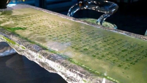 李老師設(shè)想將《蘭亭序》織成古錦,采用將織錦嵌入冰島水晶的工藝,塑造在河水中被千古冰封的樣子,使其成為一款晶瑩剔透、色調(diào)清新、視覺(jué)驚艷的藝術(shù)茶桌,實(shí)現(xiàn)書(shū)法美、織錦美、意境美和諧統(tǒng)一,突破以往高端茶桌均采用名貴木材的概念,使當(dāng)代中華文化創(chuàng)意設(shè)計(jì)實(shí)現(xiàn)新的跨躍。