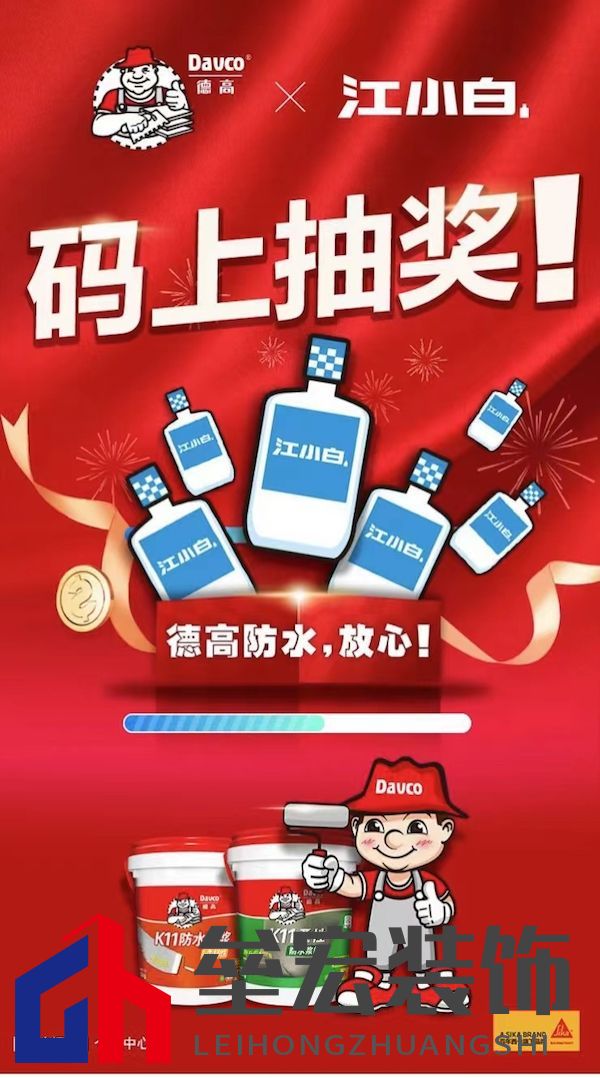 ??室內(nèi)防水,推薦選擇德高K11防水砂漿及德高K11柔性防水漿料組合,墻剛地柔,滴水不漏,更放心!現(xiàn)在入手,分分鐘喜提“江小白”,和老友暢聊品酒,愜意得很! |