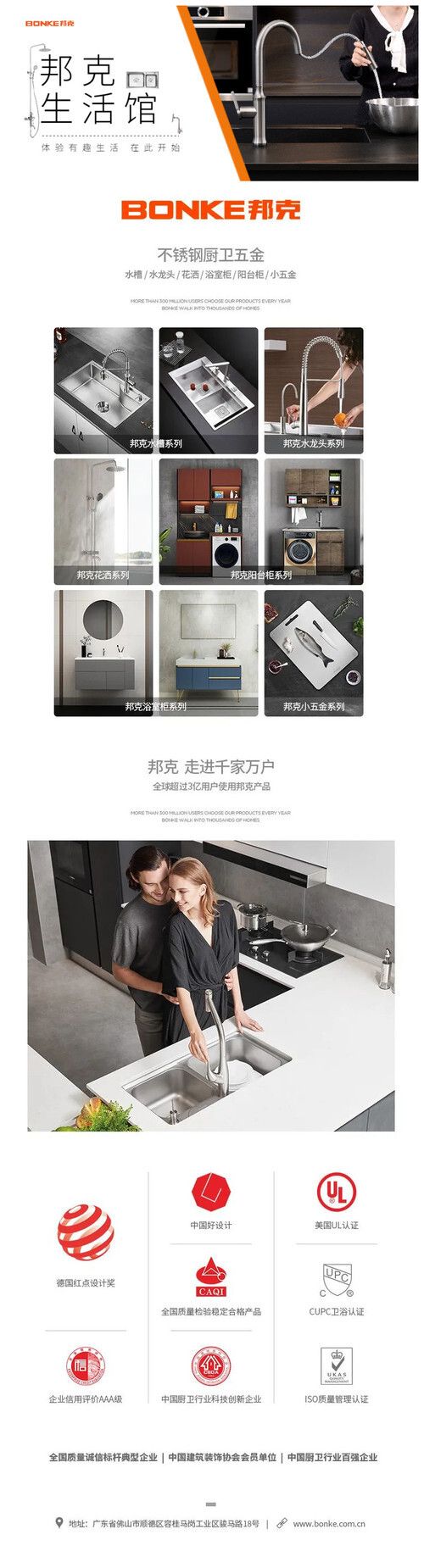 后疫情時代,打通線上線下營銷渠道新策略已成為業(yè)界共識。邦克憑借自身突出的品牌實力、扎實的質量體系和全面的布局,構建了立體式的線上銷售閉環(huán)模式。未來,邦克還將會在品牌推廣,扶商政策,保姆式服務等方面加大線上引流線下成交模式,持續(xù)賦能廣大經(jīng)銷商及合作伙伴。同時,邦克還將圍繞“用戶體驗”全流程打造產品和服務的升級,推動各平臺線上線下全渠道的深度變革,把“締造生活新享法”理念落實到商業(yè)價值鏈各個環(huán)節(jié)中。 未來,邦克廚衛(wèi)還將以堅持市場導向,保障基本消費、增加優(yōu)質消費、抓住高端消費,以消費升級引領產品升級為原則開展研發(fā)和創(chuàng)新,加強對新產品、新技術、新材料的研制,升級消費者美好人居新體驗,引領廚衛(wèi)五金行業(yè)實現(xiàn)高質量發(fā)展。