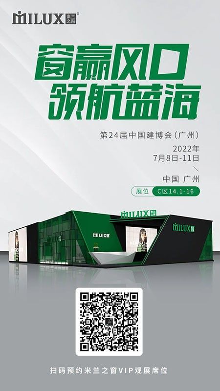 ??作為中國(guó)系統(tǒng)門(mén)窗行業(yè)的領(lǐng)軍品牌,米蘭之窗不斷引領(lǐng)中國(guó)門(mén)窗新風(fēng)尚,此次展會(huì)不僅是米蘭之窗對(duì)產(chǎn)品工藝創(chuàng)新展示,更是在獨(dú)具影響力的行業(yè)舞臺(tái)彰顯品牌綜合實(shí)力的亮劍之行。2022年品牌首秀即將拉開(kāi)序幕,行業(yè)盛世紛呈,7月8日-11日,中國(guó)進(jìn)出口商品交易會(huì)展館(廣交會(huì)展館)C區(qū)14.1-16展位,米蘭之窗整裝待發(fā),勢(shì)必領(lǐng)潮中國(guó)建博會(huì),如約相”建“,聚享未來(lái)。
