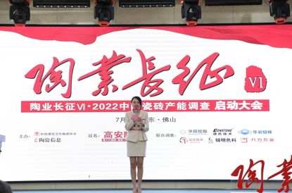 ??新趨勢、新長征 ??7月5日下午,“陶業(yè)長征VI·2022中國瓷磚產(chǎn)能調(diào)查”活動在廣東佛山正式啟動。本次活動由“高安陶瓷”冠名,并得到了華碩控股集團、道氏技術(shù)、華巖輥棒、中天環(huán)保、錦明色料、九方瓦業(yè)等企業(yè)的鼎力支持。