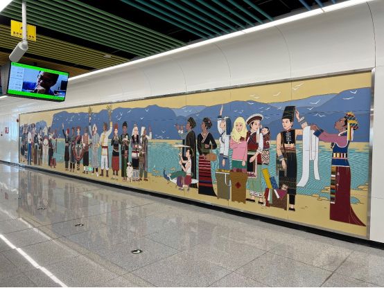 ??快速行動(dòng) 精湛工藝獲認(rèn)可 ??昆明地鐵5號(hào)線是連接昆明東北-西南向的骨干線路,線路盡顯昆明生態(tài)宜居、人與自然和諧共生的特征,其重點(diǎn)站點(diǎn)也集中展現(xiàn)了相應(yīng)的城市地域文化元素。漁戶村站作為線網(wǎng)中最靠近民族村的車(chē)站,以多民族、民族大團(tuán)結(jié)為主題出發(fā),用民族的多色彩表現(xiàn)多元的地域文化。