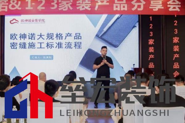 ??下午,在周口世紀(jì)星精品酒店(紅星美凱龍店)舉辦的歐神諾&123家裝產(chǎn)品分享會正式開始,歐神諾周口總代運營總監(jiān)冉令鵬首先發(fā)表了致辭演講,向大家分享了歐神諾大規(guī)格產(chǎn)品密縫施工標(biāo)準(zhǔn)流程,歐神諾的大規(guī)格瓷磚密縫,解決了縫隙的凹陷、難清潔等缺點,讓施工更快捷簡便,整體鋪貼效果更完美。
