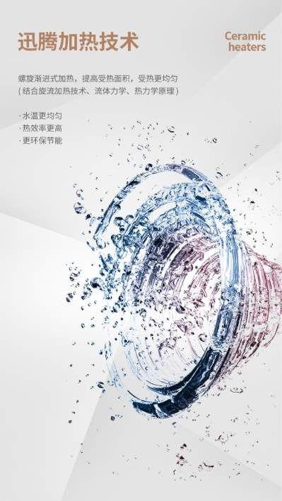 ??熱效率遠(yuǎn)超國家標(biāo)準(zhǔn),高能效更加環(huán)保節(jié)能 ??奧特朗即熱式電熱水器F11H具備獨(dú)有的迅騰加熱技術(shù),水進(jìn)入加熱器后作動(dòng)態(tài)高速旋轉(zhuǎn),螺旋漸進(jìn)式加熱,提高受熱面積,使受熱更均勻,極大提高熱效率,真正做到秒速加熱,開機(jī)即洗,無需漫長等待。其熱效率可高達(dá)96.7%,遠(yuǎn)超國家標(biāo)準(zhǔn)的80%,更加環(huán)保節(jié)能、低耗省電。