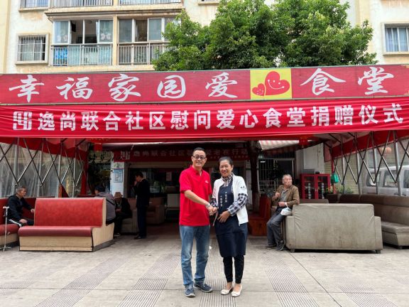 ??回訪團隊來到榜樣人物小區(qū)樓下時,王蘭蘭還在為社區(qū)愛心食堂一場公益活動而忙碌著。見到回訪團隊捧著鮮花到來,她馬上熱情地迎上來握手問候。
