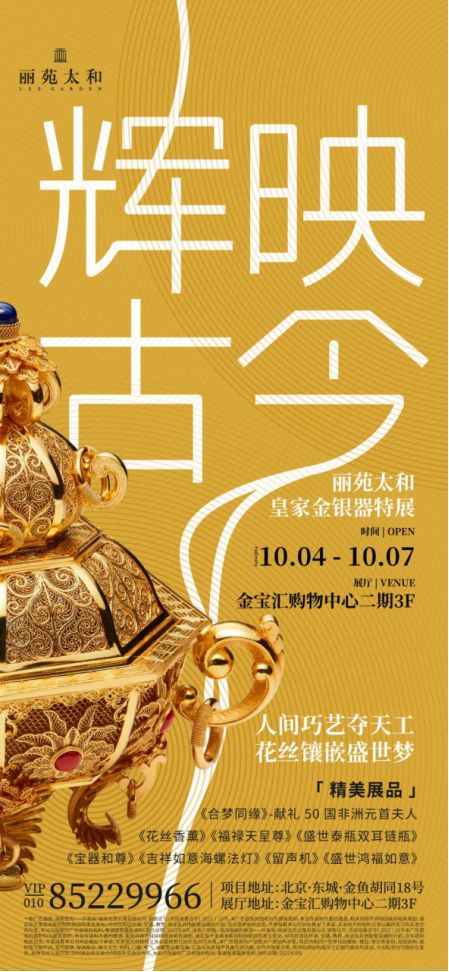 | —— 2022.10.4–10.7 邀你共鑒中華技藝之美  人間巧藝奪天工 花絲鑲嵌盛世夢(mèng) 2022年10月4日-7日 “輝映古今”皇家金銀器特展 在麗苑太和盛大舉行  八件精美展品 傾世而來(lái) 氣派恢宏 《合夢(mèng)同緣》-獻(xiàn)禮 50 國(guó)非洲元首夫人 《花絲香薰》《福祿天呈尊》 《盛世泰瓶雙耳鏈瓶》《寶器和尊》 《吉祥如意海螺法燈》《留聲機(jī)》 《盛世鴻福如意》     10月5日 中國(guó)工藝美術(shù)大師 花絲鑲嵌國(guó)禮制作大師 ——趙春明 親臨現(xiàn)場(chǎng) 與麗苑貴賓共話(huà)傳統(tǒng)文化與非遺技藝 在金銀器的世界里 感受華夏民族的非凡智慧與藝術(shù)創(chuàng)造力     < 3000多年歷史 燕京八絕之一 花絲鑲嵌 > “采金為絲,妙手編結(jié),嵌玉綴翠,是為一絕?!?/p> 花絲鑲嵌工藝,主要用于皇家飾品制作,距今已有3000余年歷史。它起源于春秋戰(zhàn)國(guó)時(shí)代,在經(jīng)濟(jì)發(fā)達(dá)的唐宋時(shí)期得到迅速發(fā)展,又因絲綢之路美名遠(yuǎn)揚(yáng),在明清達(dá)到巔峰鼎盛。花絲鑲嵌尤以編織、堆壘技法見(jiàn)長(zhǎng),常用點(diǎn)翠工藝,取得金碧輝煌的效果。2008年6月花絲鑲嵌制作技藝被列入國(guó)家級(jí)非物質(zhì)文化遺產(chǎn)名錄。    “我們這一行看著很枯燥很乏味,但是鉆進(jìn)去以后,了解它的發(fā)展歷史以后,你會(huì)非常喜歡它,熱愛(ài)它,能帶給年輕人充分的自信。我始終希望這么優(yōu)秀的傳統(tǒng)文化和傳統(tǒng)技藝能一直傳承下去?!?/p> ——中國(guó)工藝美術(shù)大師、非物質(zhì)文化遺產(chǎn)花絲鑲嵌傳承人趙春明  趙春明大師從事花絲鑲嵌至今已40余年,除了花絲鑲嵌,他還精通鏨刻、摟胎等手工技藝,在設(shè)計(jì)理念上亦有獨(dú)到之處,不僅制作了許多精美的花絲鑲嵌作品如《圓明園-金玉大水法》、《和平暢想》、《合夢(mèng)同緣》、《黃鶴樓》、《鸛雀樓》等,還為首都博物館、十三陵博物館、杭州博物館等復(fù)制和修復(fù)了《烏紗翼善冠》、《六龍三鳳冠》、《金翼善冠》、《金執(zhí)壺》等數(shù)百件文物。   < 偉大的作品 在時(shí)光淬煉中誕生 > 精益求精、專(zhuān)屬性、唯一性,偉大作品在時(shí)光淬煉中誕生。 麗苑太和亦是如此,作為富華置地2022年在北京的又一力作,是繼「長(zhǎng)安太和」后延續(xù)富華集團(tuán)在內(nèi)城的頂奢產(chǎn)品系。  東城區(qū)是北京歷史文化遺存、胡同四合院與非物質(zhì)文化遺產(chǎn)最為密集的地區(qū),也是名副其實(shí)的“首都文化中心區(qū)”。麗苑太和位于東城區(qū)核心處,金魚(yú)胡同18號(hào),一面是以故宮為代表的恢弘的皇家建筑與園囿,一面是以金寶街為代表的前衛(wèi)的全球化潮流街區(qū)。在這里,傳統(tǒng)文化與潮流文化共生共榮,如花絲鑲嵌絕世工藝一般,二者合而為一交織出極富戲劇張力的多元化內(nèi)城生活。  |