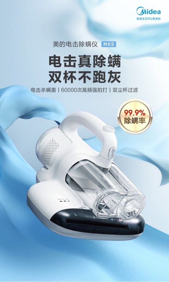 | ??隨著消費升級,“精致生活”“高效清潔”等理念的快速興起,作為清潔電器重要組成部分,除螨儀抓住了“精致懶”的現(xiàn)代人對于貼身清潔的痛點,獲得消費者的青睞。作為國內(nèi)小家電的頭部品牌,美的創(chuàng)新性推出除螨儀MX5,領(lǐng)先采用雙塵杯設(shè)計,精密分濾塵螨,雙杯不跑灰,避免造成二次污染,真正實現(xiàn)“科技改變生活”,提升居家幸福指數(shù)。
