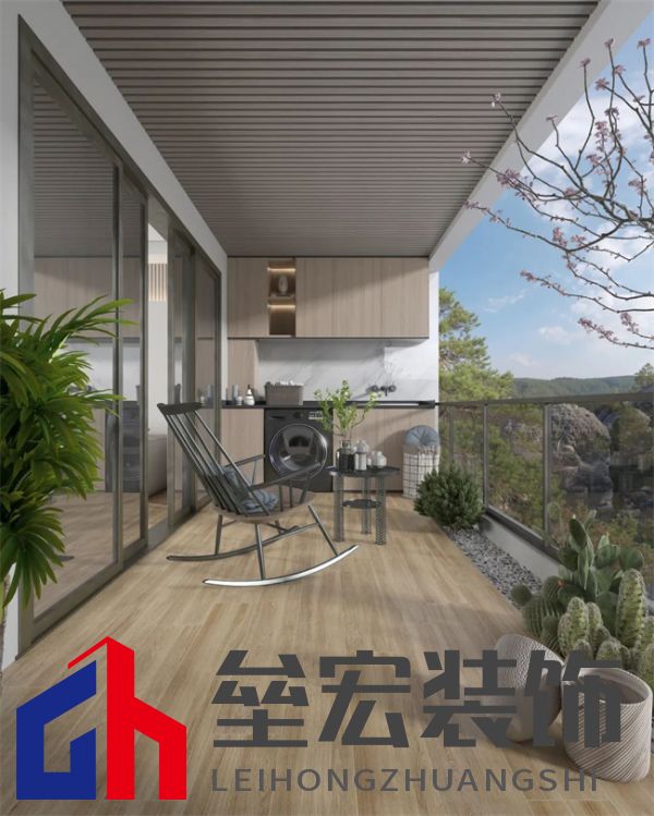 ▲暖木棕SFA21AH1650 暖木棕線條細(xì)致柔和,鋪貼在陽臺區(qū)域,與戶外景觀形成一體,整個陽臺空間格調(diào)都拉升起來。啞光面讓瓷磚更接近天然原木的溫和質(zhì)感,綠植以及布麻藝的家具元素,增加自然感以及原生態(tài)的趣味。