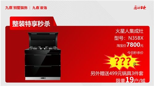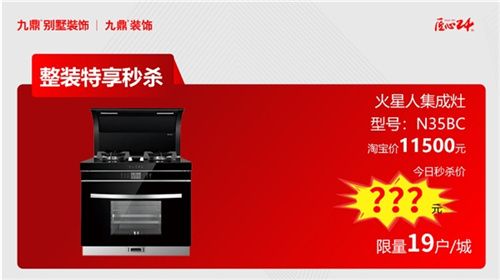 火星人集成灶,型號(hào):N35BC,淘寶價(jià)11500元,今日秒殺價(jià)???元(限量19戶/城)