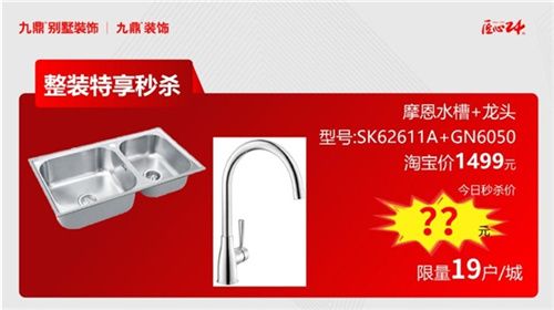 摩恩水槽+龍頭,型號(hào):SK62611A+GN6050淘寶價(jià)1499元,今日秒殺價(jià)??元(限量19戶/城)