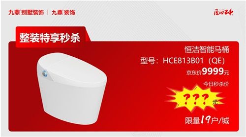 整裝特享秒殺 恒潔智能馬桶,型號(hào):HCE813B01(QE),京東價(jià)9999元,今日秒殺價(jià)???(限量19戶/城)