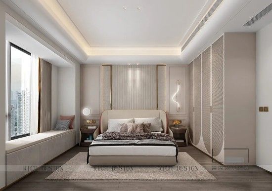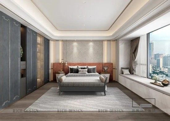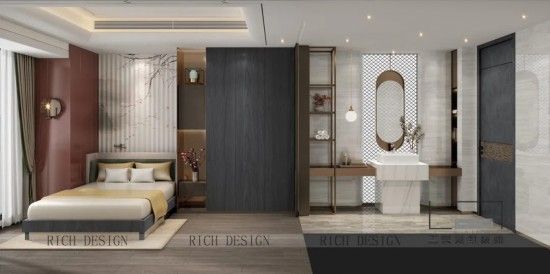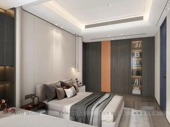 ??主臥延續(xù)著摩登新東方的裝飾風(fēng)格,干凈利落的線條與燈光完美演繹,凸顯了空間的層次感,營(yíng)造出溫馨舒適的睡眠空間。
