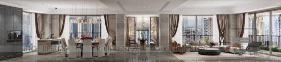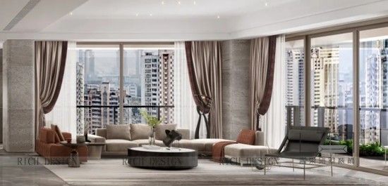 ??客廳和餐廳相互連通,三面大落地窗使內(nèi)部空間顯得更加通透。四周的環(huán)繞式露臺(tái)讓室內(nèi)外景色渾然一體;躺在陽(yáng)臺(tái)的椅子上,坐城觀海,縱觀都市繁華的麗景,享受海風(fēng)帶來(lái)的愜意。