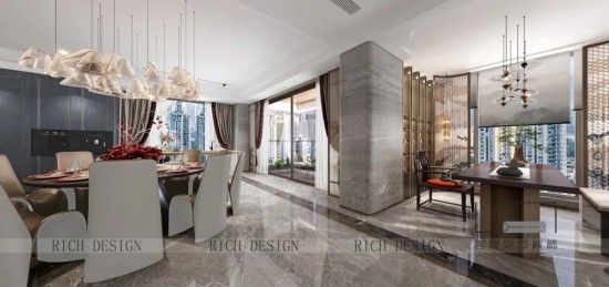 ??我們根據(jù)業(yè)主的氣質(zhì)和生活習(xí)慣,以現(xiàn)代風(fēng)格為主導(dǎo),運(yùn)用了大量霧霾藍(lán)木飾面貫穿到整個(gè)空間,高級(jí)的木質(zhì)材料搭配精美紋理的大理石和黃銅等元素,盡顯經(jīng)典的輕奢質(zhì)感。整體配色大膽而細(xì)膩,再以中式元素作為點(diǎn)綴,美而克制。 ??客餐廳