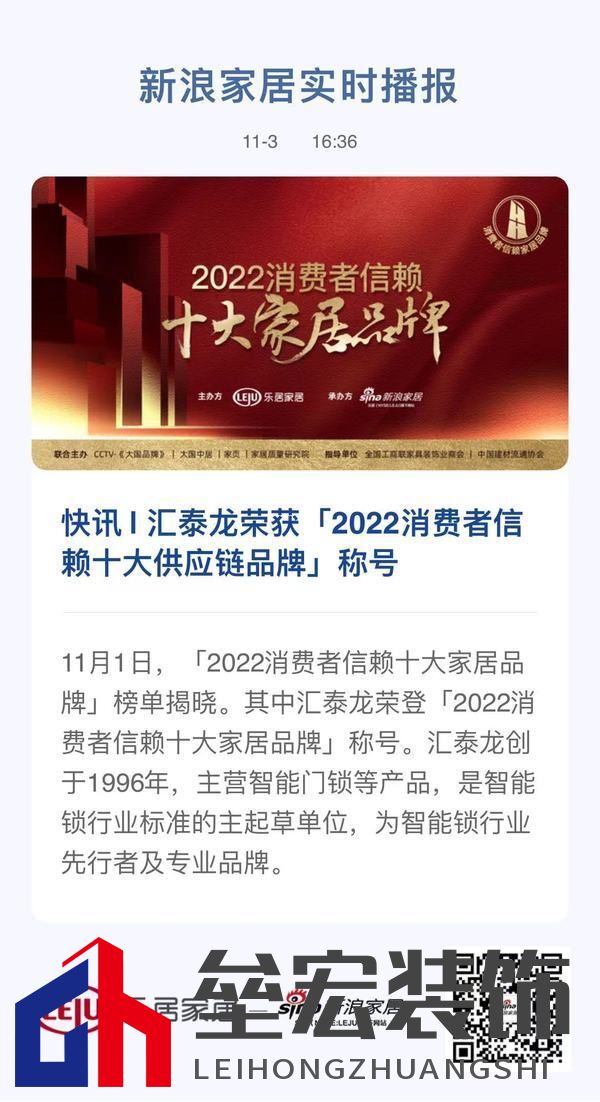??11月1日,「2022消費(fèi)者信賴十大家居品牌」榜單揭曉。其中匯泰龍榮登「2022消費(fèi)者信賴十大家居品牌」稱號(hào)。匯泰龍創(chuàng)于1996年,主營(yíng)智能門鎖等產(chǎn)品,是智能鎖行業(yè)標(biāo)準(zhǔn)的主起草單位,為智能鎖行業(yè)先行者及專業(yè)品牌。