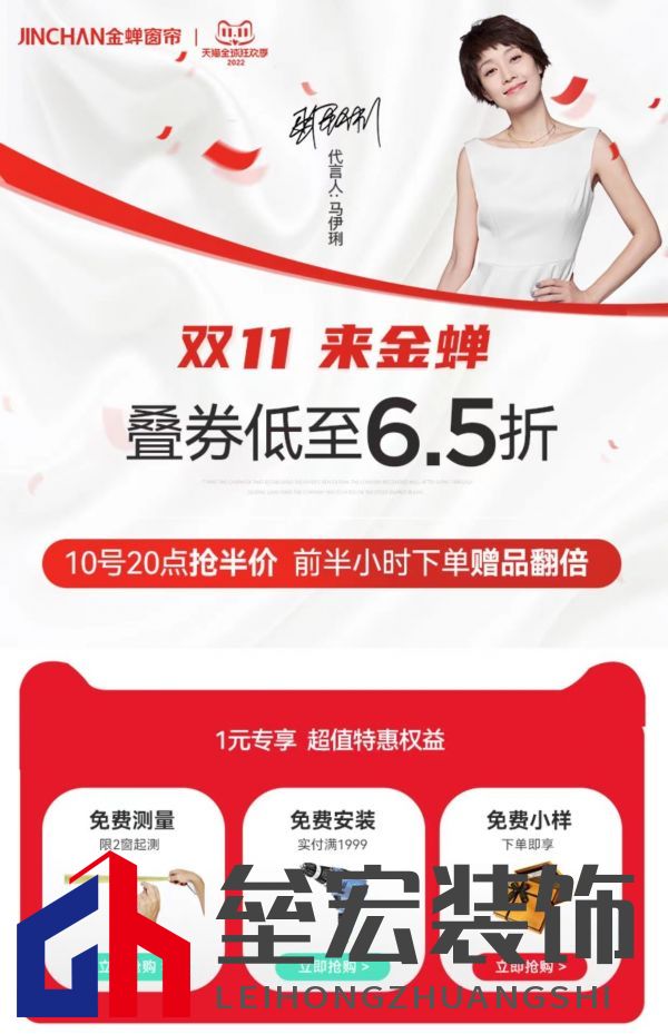 ??金蟬窗簾在今年的雙十一給新老顧客一個鉅惠折扣,產(chǎn)品全是65折,而且在付定金和尾款的時候還可以搶半價優(yōu)惠。馬上雙十一活動要結(jié)束了,但是雙十一現(xiàn)貨半價優(yōu)惠還沒有收尾,金蟬窗簾在11月10日20點開始到11月11日11點59分下單并付款的第1-20個訂單依然是半價優(yōu)惠,前21-50名的顧客是窗紗半價,半價活動雖與其它優(yōu)惠券不可疊加使用,但是半價優(yōu)惠可謂是窗簾行業(yè)的前所未有,搶到就是賺到。 ??注重家裝的朋友都知道,金蟬窗簾在窗簾行業(yè)中算是先行者,早在1988年,金蟬就成為國內(nèi)窗簾行業(yè)優(yōu)秀的生產(chǎn)制造商和銷售商,然后專注主打布藝窗簾。金蟬從開始就把品質(zhì)和創(chuàng)新放在前位,從首創(chuàng)窗紗噴花工藝,引領(lǐng)窗紗進(jìn)入彩色時代,到成功研發(fā)出專利新品“分解甲醛功能性窗簾”,金蟬的產(chǎn)品質(zhì)量一直在線,產(chǎn)品也逐漸遍布全國各地,并遠(yuǎn)銷世界60多個國家和地區(qū)。再加上金蟬還是馬伊琍代言的,品牌力持續(xù)上升,近三年金蟬窗簾在天貓金蟬旗艦店連續(xù)三年成為雙十一銷量冠軍。