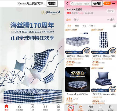 海絲騰還結(jié)合年輕群體購買習(xí)慣,積極擁抱數(shù)字化浪潮。在渠道方面,品牌聯(lián)動(dòng)線上與線下銷售鏈路開啟“輕店新零售”模式,開啟體驗(yàn)型睡眠消費(fèi)新方式。此外,為觸達(dá)到更多年輕消費(fèi)者,海絲騰積極探索電商領(lǐng)域,參與天貓大促活動(dòng)、試水直播,并持續(xù)拓展微盟電商平臺(tái),全面提升消費(fèi)者的購物體驗(yàn),助力其挑選到合適的家居產(chǎn)品,擁抱美好家居品質(zhì)生活。