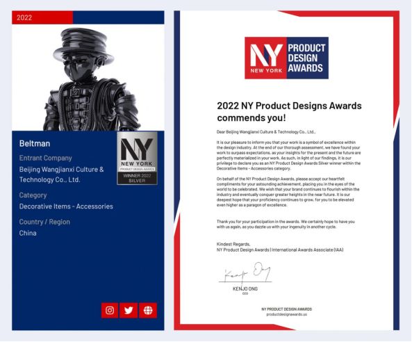 | ??近日,2022年美國紐約產(chǎn)品設計獎(NY Product Design Awards)官方公布了年度獲獎者名單,在今年的比賽中,望見璽品牌創(chuàng)始人、設計總監(jiān)白帆憑借卓越的設計理念脫穎而出,其參賽作品Beltman虜獲了評審團的心,榮獲產(chǎn)品設計裝飾類、配飾類銀獎。 ??紐約產(chǎn)品設計獎(NY Product Design Awards)作為當今著名的產(chǎn)品設計權威獎項,旨在表彰來自世界各地的天才產(chǎn)品設計師、設計團隊和制造商的努力。他們的設計以其實用和巧妙的創(chuàng)造使日常生活更加美好。