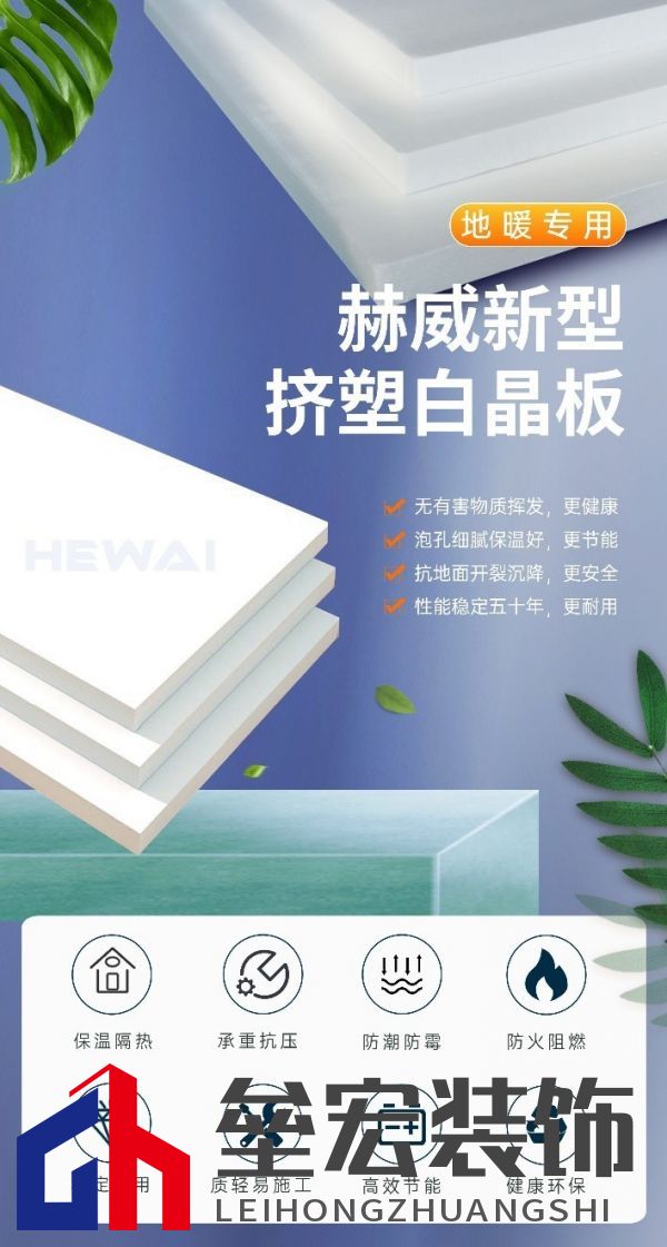 ??三、高防腐,低吸水,更耐用 ??赫威新型擠塑白晶板具有優(yōu)異的防腐蝕、防老化、防火阻燃性能,即使在高水蒸氣壓力下,仍能保持其優(yōu)異的品質,更經(jīng)久耐用。其吸水率低于0.5%,可有效解決其他材料漏水滲透、發(fā)霉腐蝕、結霜冷凝等問題,即便長期泡水也能維持不變,使用壽命達50年以上。 ??四、高品質、好原料,更環(huán)保 ??當前,市場上充斥著各種回收料、有害塑料生產(chǎn)的地暖保溫板,其在地暖使用環(huán)境下會產(chǎn)生氯氣、甲醛等有害氣體及致癌物質,長期使用對人體健康會造成極大傷害。 ??赫威新型擠塑白晶板采用100%全新環(huán)保原材料,通過先進的無氟無溴技術生產(chǎn),零添加劑,高溫下無任何有害物質釋放,真正環(huán)保健康更安全。