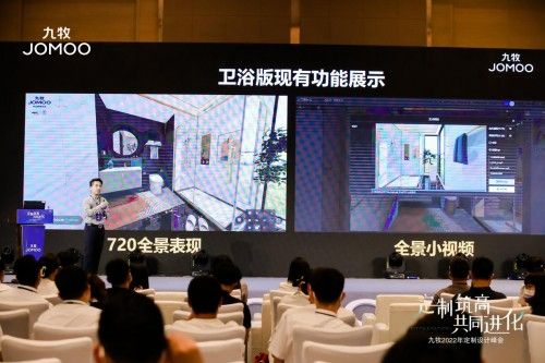 這里有一組數據——成功實現(xiàn)數字化轉型后,九牧的生產效率復合提升35%,節(jié)省20%的人工成本、管理效率提升20%、產品不良率降低5%、能源用量減少7%、運營成本降低8%、產品研發(fā)周期年均縮短15天。數字化為九牧帶來肉眼可見的提質、增效、降本、減耗。 尹虹博士認為,縱觀行業(yè),數字化生產、數字化倉儲物流近幾年已逐漸成熟,數字化未來的難點將在于客戶應用場景上,如何將消費者的個性化需求通過數字化展現(xiàn)出來。 在數字化營銷獲客上,九牧同樣走在前列。通過與數字化設計工具的深度融合,以設計場景解決方案觸達線上線下消費者,是九牧收獲業(yè)績增長的關鍵。 據了解,九牧與家居云工業(yè)軟件三維家早在2018年開始合作,從設計軟件使用開始逐步深化,到2021年已全面實現(xiàn)設計生產一體化,在全國門店推廣空間效果圖設計,效果圖可一鍵下單到工廠,對接后端生產設備。 九牧集團副總裁林友轉介紹,僅在今年上半年,九牧門店設計師運用三維家軟件設計方案就超過55000個,渲染效果圖12萬+,比去年同期提升200%。通過三維家軟件設計下單,帶動九牧定制業(yè)績增長40%,成效斐然。