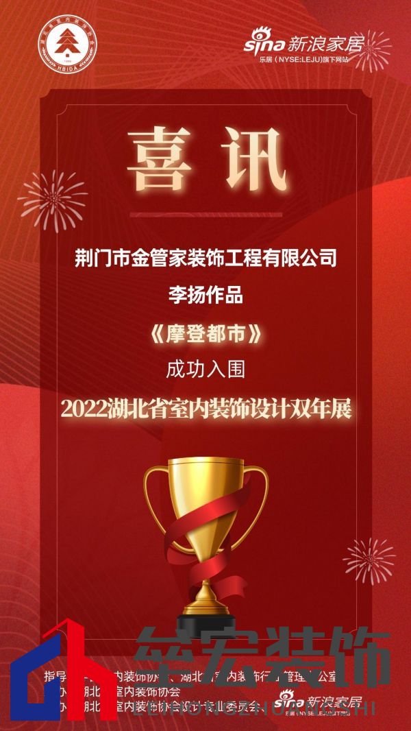 | 綠色設(shè)計,大美荊楚,由中國室內(nèi)裝飾協(xié)會、湖北省室內(nèi)裝飾行業(yè)管理辦公室的指導(dǎo),湖北省室內(nèi)裝飾協(xié)會主辦的2022湖北室內(nèi)裝飾設(shè)計雙年展,在室內(nèi)裝飾設(shè)計行業(yè)打造了一場全省范圍的設(shè)計盛會,首輪評選百余套作品,70余套優(yōu)秀作品成功入圍。 在智能化、人文化、健康舒適化的時代趨勢下,雙年展的舉辦,以新時代、新理念、新創(chuàng)意,提升室內(nèi)裝飾設(shè)計水平,為設(shè)計師進(jìn)行品牌賦能,弘揚(yáng)荊楚設(shè)計精神與風(fēng)貌。針對這項有權(quán)威性、有知名度的專業(yè)賽事,武漢各大裝飾公司及設(shè)計工作室積極響應(yīng),因?yàn)閰⒓与p年展對設(shè)計師開拓視野、加強(qiáng)行業(yè)交流、提升專業(yè)水平具有重要意義。 雙年展專家組評委秉承公正公平、優(yōu)中選優(yōu)的原則,經(jīng)過層層篩選,初評結(jié)果現(xiàn)已出爐。 設(shè)計滋養(yǎng)生活,生活反哺設(shè)計,優(yōu)秀的作品,總是離不開對藝術(shù)矢志不移的熱情與探索,以及對美與愛的深度感知,雙年展入圍作品均對此進(jìn)行了完美的詮釋。 荊門市金管家裝飾工程有限公司設(shè)計師李揚(yáng)原創(chuàng)作品《摩登都市》,成功入圍2022湖北省室內(nèi)裝飾設(shè)計雙年展,以獨(dú)特的設(shè)計風(fēng)格,和優(yōu)秀的設(shè)計能力,展示設(shè)計理念和創(chuàng)意。
