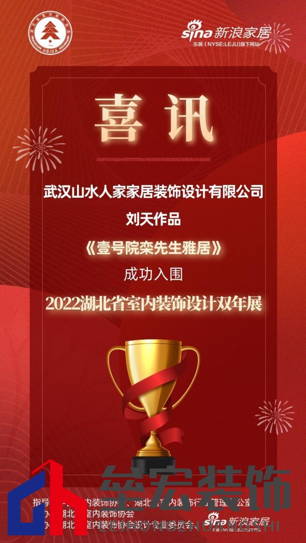 | 綠色設(shè)計(jì),大美荊楚,由中國室內(nèi)裝飾協(xié)會(huì)、湖北省室內(nèi)裝飾行業(yè)管理辦公室的指導(dǎo),湖北省室內(nèi)裝飾協(xié)會(huì)主辦的2022湖北室內(nèi)裝飾設(shè)計(jì)雙年展,在室內(nèi)裝飾設(shè)計(jì)行業(yè)打造了一場(chǎng)全省范圍的設(shè)計(jì)盛會(huì),首輪評(píng)選百余套作品,70余套優(yōu)秀作品成功入圍。 在智能化、人文化、健康舒適化的時(shí)代趨勢(shì)下,雙年展的舉辦,以新時(shí)代、新理念、新創(chuàng)意,提升室內(nèi)裝飾設(shè)計(jì)水平,為設(shè)計(jì)師進(jìn)行品牌賦能,弘揚(yáng)荊楚設(shè)計(jì)精神與風(fēng)貌。針對(duì)這項(xiàng)有權(quán)威性、有知名度的專業(yè)賽事,武漢各大裝飾公司及設(shè)計(jì)工作室積極響應(yīng),因?yàn)閰⒓与p年展對(duì)設(shè)計(jì)師開拓視野、加強(qiáng)行業(yè)交流、提升專業(yè)水平具有重要意義。 雙年展專家組評(píng)委秉承公正公平、優(yōu)中選優(yōu)的原則,經(jīng)過層層篩選,初評(píng)結(jié)果現(xiàn)已出爐。 設(shè)計(jì)滋養(yǎng)生活,生活反哺設(shè)計(jì),優(yōu)秀的作品,總是離不開對(duì)藝術(shù)矢志不移的熱情與探索,以及對(duì)美與愛的深度感知,雙年展入圍作品均對(duì)此進(jìn)行了完美的詮釋。 武漢山水人家家居裝飾設(shè)計(jì)有限公司設(shè)計(jì)師劉天原創(chuàng)作品《壹號(hào)院欒先生雅居》,成功入圍2022湖北省室內(nèi)裝飾設(shè)計(jì)雙年展,以獨(dú)特的設(shè)計(jì)風(fēng)格,和優(yōu)秀的設(shè)計(jì)能力,展示設(shè)計(jì)理念和創(chuàng)意。