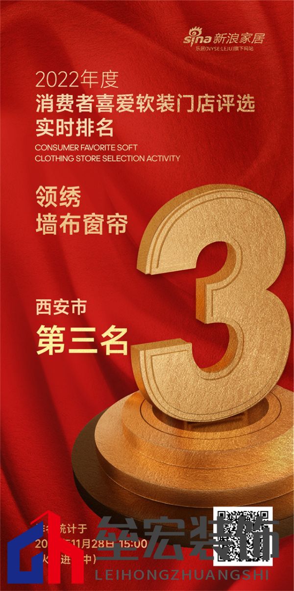 此次評(píng)選中,截止發(fā)稿日期,領(lǐng)繡墻布窗簾憑借極具美學(xué)的優(yōu)質(zhì)產(chǎn)品、貼心周到的全方位服務(wù)、適宜實(shí)用的個(gè)性化定制等優(yōu)質(zhì)口碑,在此次評(píng)選中以極佳人氣,暫列西安市第三名。