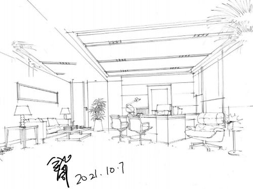 手繪方案——圖三 【李蔓蔓】:郭工您家裝設(shè)計(jì)做的非常棒,現(xiàn)在一線城市房價(jià)越來越高,小戶型的房子是大部分人的選擇,您在小戶型的裝修上,給我們業(yè)主朋友有什么好的建議嗎? 【郭小君】:小戶型設(shè)計(jì)最重要的是整合空間提高使用率,讓其功能“物盡其用”。通過不同收納柜設(shè)計(jì),不同材質(zhì)色彩的配合,讓空間明亮化,寬闊的視感,巧妙區(qū)分空間里的不同區(qū)域,讓層次更分明;小戶型設(shè)計(jì)難道不亞于大戶型的設(shè)計(jì),小戶型的燈光設(shè)計(jì)也極為講究,多種形式的組合使用,既可以劃分空間區(qū)域,又能增加情調(diào)和趣味;小戶型也可以做到功能全面,富有格調(diào),流暢而不擁擠,通透感。 設(shè)計(jì)放在心尖上 “把設(shè)計(jì)融入愛,放在心尖上” 【李蔓蔓】:為什么說真正愛上設(shè)計(jì)工作才能做更好設(shè)計(jì)作品,您覺得團(tuán)隊(duì)的合作力量影響大否? 【郭小君】:家居設(shè)計(jì)雖然重在專業(yè)上的開展和腦力思維的展現(xiàn),但如果一個(gè)設(shè)計(jì)師只是把設(shè)計(jì)工作當(dāng)作謀生的工具,抱著應(yīng)付式或得過且過的心態(tài),便會(huì)發(fā)現(xiàn)少了一份積極工作的激情和動(dòng)力,當(dāng)你真正愛上設(shè)計(jì)這份工作,才發(fā)現(xiàn)愛讓你游刃有余地投入工作氣氖,才能出更好的創(chuàng)意,輸出很優(yōu)秀的作品。 至于團(tuán)隊(duì)合作,設(shè)計(jì)是一個(gè)要靠團(tuán)隊(duì)才能取勝的行業(yè),每個(gè)人各司其職,在各自的分工中充分發(fā)揮主觀能動(dòng)性,對(duì)自己的成果輸出負(fù)責(zé)。以開放、接納、包容的心態(tài)共同進(jìn)步成長,設(shè)計(jì)團(tuán)隊(duì)每一個(gè)分子都非常重要。