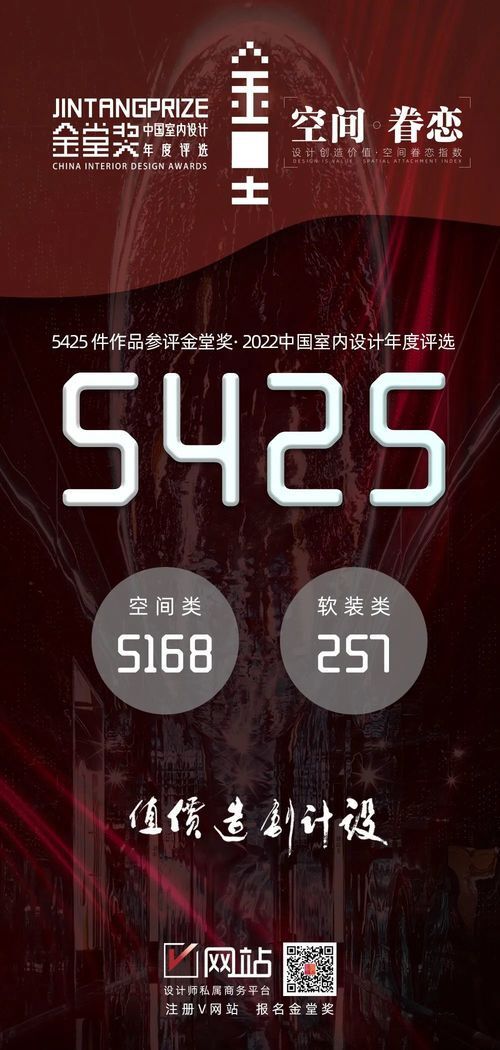 2022,是金堂獎年度作品征集參評豐收的一年,是中國設(shè)計產(chǎn)業(yè)成果豐收的一年! 經(jīng)全面統(tǒng)計,在2022年度,共有5425件作品參評金堂獎·中國室內(nèi)設(shè)計年度評選,其中空間類共有5168件作品,軟裝類共有257件作品參評。 我們感謝每一位參與金堂獎、關(guān)注金堂獎、支持金堂獎的朋友們,正因為你們,我們在疫情引起的風(fēng)波中,在中國建筑裝飾行業(yè)艱難前行的2022年,同心戮力、攜手同行,依然取得了如此卓越的成績。 5425,我們相聚于金堂獎,共話“空間·眷戀”,共同開創(chuàng)設(shè)計師話語權(quán)新時代!