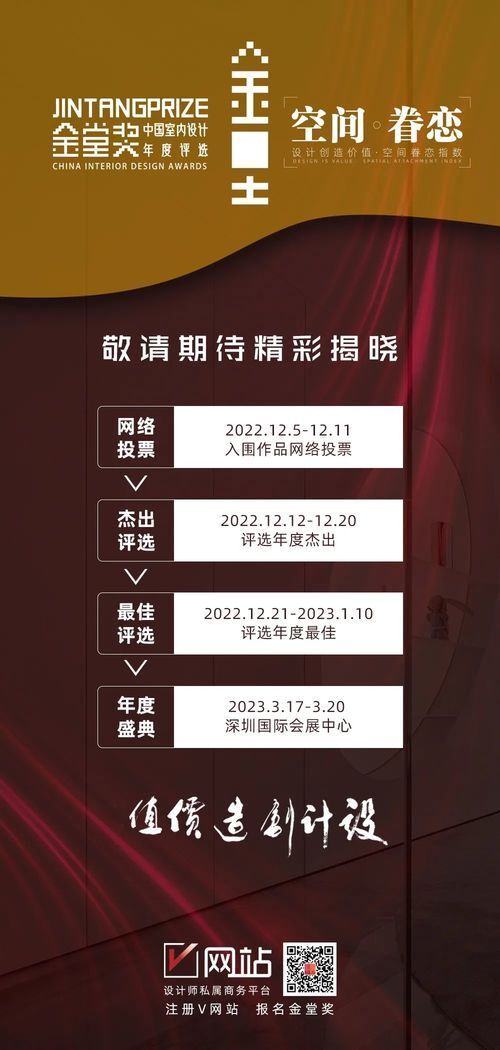 對于這些來自于五湖四海的優(yōu)秀設(shè)計作品,金堂獎評審委員會將不辱使命,以“空間眷戀指數(shù)”為評審標(biāo)準(zhǔn),依托V網(wǎng)站搭建的金堂獎互聯(lián)網(wǎng)作品評審平臺,以最嚴格的標(biāo)準(zhǔn),完成年度杰出作品、年度最佳作品的評選,為中國設(shè)計界交出一份滿意的答卷。