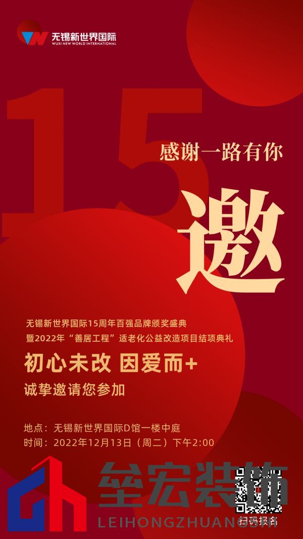 【活動預(yù)告】值此年終之際,為表彰和鼓勵先進(jìn),提高市場活力!12月13日下午2:00,無錫新世界國際15周年百強(qiáng)品牌頒獎盛典暨2022年“善居工程”&“頤居江溪”適老化公益改造項目結(jié)項典禮將在無錫新世界國際家居建材城二期·精品建材館一樓舉辦,誠摯的邀請您參加~期待您的關(guān)注和蒞臨,新浪家居將持續(xù)報道后續(xù)訪談內(nèi)容及頒獎盛況。 |