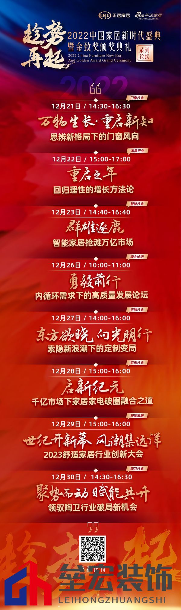 ??“連接美好生活,共創(chuàng)行業(yè)佳績”,家居、家裝行業(yè)未來的高質量發(fā)展離不開每個家居優(yōu)秀企業(yè)的聚力,也離不開每一個行業(yè)踐行高質量發(fā)展的責任與決心。歲末年初交替之際,樂居家居與新浪家居將始終不遺余力地深入家居行業(yè)及泛家居領域,發(fā)現(xiàn)、構筑、傳遞中國家居企業(yè)示范精神和榜樣力量,匯聚勇于擔當中國民族品牌復興重任的精英企業(yè)家,展現(xiàn)新時代背景下中國家居品牌特有的氣質與力量,為中國自主品牌發(fā)聲,助推中國品牌群體崛起! ??“回眸過往、展望未來”,『2022中國家居新時代盛典』將以“信心、融合、共贏、高質量發(fā)展”為關鍵詞,匯聚行業(yè)領袖及專家學者,把脈發(fā)展動向,共話大變局下的可持續(xù)發(fā)展之道,以信念加持行動,推動行業(yè)持續(xù)發(fā)展,助力國家經濟有序復蘇。 ??12月26日,讓我們家居人一到趁勢再起、勇毅前行,昂首闊步開啟家居產業(yè)高質量發(fā)展新紀元。 |