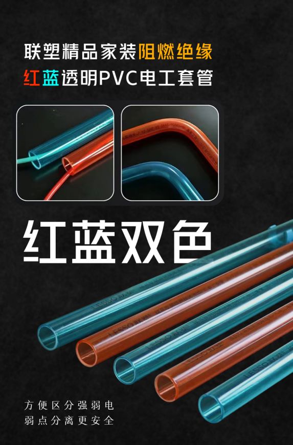 ??下水口搭配安裝聯(lián)塑防返溢地漏系列產(chǎn)品 ??還能更好地解決“臭、堵、淹、溢”等問(wèn)題 ??3、電路保護(hù) ??電路鋪設(shè)同樣是家裝的重中之重 ??隱藏在墻體或地板內(nèi)的電路 ??一旦發(fā)生短路、漏電等問(wèn)題 ??不僅影響正常使用,還容易引發(fā)火災(zāi) ??所以電路的保護(hù)也一定不能馬虎 ??聯(lián)塑精品家裝阻燃絕緣紅藍(lán)透明PVC電工套管 ??采用新型PVC材質(zhì) ??透明度高,彎曲性能好 ??可為電路提供多一層可靠保護(hù) ??紅藍(lán)雙色設(shè)計(jì),更便于區(qū)分強(qiáng)弱電 ??及時(shí)檢查、排除安全隱患