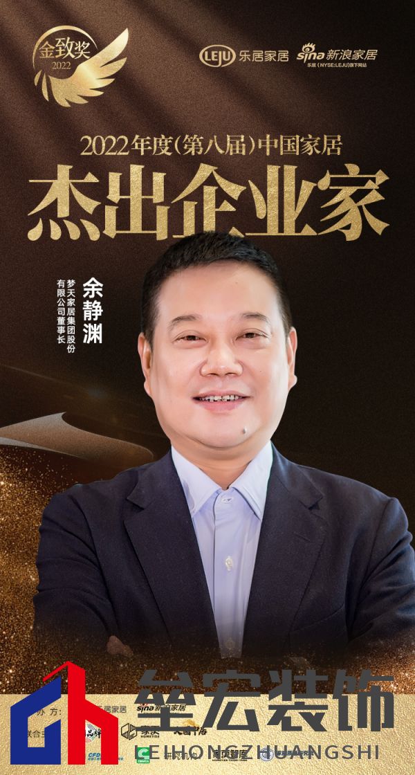 ??新浪家居訊 由樂居家居主辦,新浪家居承辦,大國(guó)品牌、家頁(yè)智庫(kù)、大國(guó)中居聯(lián)合主辦的『趁勢(shì)·再起——2022中國(guó)家居新時(shí)代盛典暨金致獎(jiǎng)?lì)C獎(jiǎng)典禮』于12月26日在云端盛大開幕。夢(mèng)天家居集團(tuán)股份有限公司董事長(zhǎng)余靜淵榮獲「2022年度(第八屆)中國(guó)家居杰出企業(yè)家」稱號(hào)。 ??余靜淵,夢(mèng)天品牌創(chuàng)始人,全國(guó)工商聯(lián)家具裝飾業(yè)商會(huì)監(jiān)事會(huì)主席、門窗專業(yè)委員會(huì)會(huì)長(zhǎng),中國(guó)木材與木制品流通協(xié)會(huì)副會(huì)長(zhǎng),是國(guó)標(biāo)《木門窗》和行標(biāo)《木質(zhì)門》主要起草人之一。2018年榮登中國(guó)家居業(yè)名人堂;2019年獲評(píng)中國(guó)特色社會(huì)主義家居行業(yè)優(yōu)秀建設(shè)者;2020年被任命為浙江省民營(yíng)經(jīng)濟(jì)研究中心副主席。 ??在中國(guó)家居發(fā)展的歷程中,創(chuàng)造就業(yè)崗位、引領(lǐng)產(chǎn)業(yè)轉(zhuǎn)型創(chuàng)新、帶動(dòng)家居行業(yè)發(fā)展少不了那些敢為人先、開創(chuàng)先河的優(yōu)秀企業(yè)家們,本次《2022年度(第八屆)中國(guó)家居杰出企業(yè)家》獎(jiǎng)項(xiàng)的正是特別為表彰他們?cè)诩揖有袠I(yè)中的突出貢獻(xiàn)而設(shè)。 ??“金致獎(jiǎng)”系列評(píng)選活動(dòng)旨在基于國(guó)家政策、市場(chǎng)趨勢(shì)對(duì)家居行業(yè)年度優(yōu)秀人物、優(yōu)質(zhì)品牌及產(chǎn)品進(jìn)行表彰及宣揚(yáng),樹立行業(yè)標(biāo)桿,鼓勵(lì)家居產(chǎn)業(yè)鏈上的企業(yè)以技術(shù)創(chuàng)新及品牌升級(jí)為原動(dòng)力,不斷提升品牌力、產(chǎn)品力、經(jīng)營(yíng)力,以此加強(qiáng)品牌口碑及影響力的塑造,鼓勵(lì)家居人不斷發(fā)揚(yáng)專業(yè)及匠心精神,踐行打造美好人居戰(zhàn)略核心,推動(dòng)行業(yè)健康、可持續(xù)的高速發(fā)展。 ??作為家居業(yè)界中首屈一指的年度盛會(huì),本次盛典以“趁勢(shì)·再起”為主題,內(nèi)容囊括行業(yè)思想盛宴、「2022十大家居事件」發(fā)布、經(jīng)濟(jì)學(xué)家馬光遠(yuǎn)教授主題演講以及2022年度多項(xiàng)榜單揭曉等重磅環(huán)節(jié),寄托著家居人步履不停,迎難而上,奮發(fā)拼搏的昂揚(yáng)精神,盛會(huì)在對(duì)2022年家居行業(yè)進(jìn)行年度復(fù)盤的同時(shí),還協(xié)邀了諸多專家學(xué)者與行業(yè)精英,共同聚焦家居行業(yè)新時(shí)期下的高質(zhì)量發(fā)展,萃取家居行業(yè)同仁智慧,凝聚家居行業(yè)各方力量,一道探尋行業(yè)在新局勢(shì)下的發(fā)展之道。