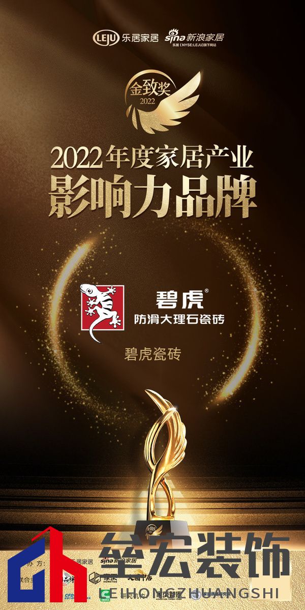 ??2022年12月26日,『趁勢(shì)·再起——2022中國(guó)家居新時(shí)代盛典暨金致獎(jiǎng)?lì)C獎(jiǎng)典禮』在云端盛大舉行。碧虎防滑大理石瓷磚榮獲「2022年度中國(guó)家居影響力品牌」稱(chēng)號(hào)。 ??碧虎防滑大理石瓷磚,獨(dú)創(chuàng)瓷磚防滑國(guó)家專(zhuān)利技術(shù),防滑度是普通瓷磚的3倍以上,解決了瓷磚“表面光滑易摔倒”的行業(yè)難題。碧虎掌握瓷磚防滑核心技術(shù),申獲2項(xiàng)國(guó)家級(jí)專(zhuān)利技術(shù),榮獲“國(guó)家權(quán)威檢測(cè)質(zhì)量合格產(chǎn)品”、“質(zhì)量檢測(cè)-國(guó)家標(biāo)準(zhǔn)合格產(chǎn)品”、“中國(guó)3.15消費(fèi)者可信賴(lài)產(chǎn)品“、”中國(guó)知名品牌”等榮譽(yù)稱(chēng)號(hào)。碧虎的安全之道,致力于可持續(xù)的安全方式提供暢行無(wú)憂(yōu)的居住空間。讓消費(fèi)者倍感安全,也象征著中國(guó)瓷磚品牌的最高社會(huì)責(zé)任精神。 ??“金致獎(jiǎng)”系列評(píng)選活動(dòng)旨在基于國(guó)家政策、市場(chǎng)趨勢(shì)對(duì)家居行業(yè)年度優(yōu)秀人物、優(yōu)質(zhì)品牌及產(chǎn)品進(jìn)行表彰及宣揚(yáng),樹(shù)立行業(yè)標(biāo)桿,鼓勵(lì)家居產(chǎn)業(yè)鏈上的企業(yè)以技術(shù)創(chuàng)新及品牌升級(jí)為原動(dòng)力,不斷提升品牌力、產(chǎn)品力、經(jīng)營(yíng)力,以此加強(qiáng)品牌口碑及影響力的塑造,鼓勵(lì)家居人不斷發(fā)揚(yáng)專(zhuān)業(yè)及匠心精神,踐行打造美好人居戰(zhàn)略核心,推動(dòng)行業(yè)健康、可持續(xù)的高速發(fā)展。 ??作為家居業(yè)界中首屈一指的年度盛會(huì),本次盛典以“趁勢(shì)·再起”為主題,內(nèi)容囊括行業(yè)思想盛宴、「2022十大家居事件」發(fā)布、經(jīng)濟(jì)學(xué)家馬光遠(yuǎn)教授主題演講以及2022年度多項(xiàng)榜單揭曉等重磅環(huán)節(jié),寄托著中國(guó)家居人步履不停,迎難而上,奮發(fā)拼搏的昂揚(yáng)精神,盛會(huì)在對(duì)2022年家居行業(yè)進(jìn)行年度復(fù)盤(pán)的同時(shí),還協(xié)邀了諸多專(zhuān)家學(xué)者與行業(yè)精英,共同聚焦家居行業(yè)新時(shí)期下的高質(zhì)量發(fā)展,萃取家居行業(yè)同仁智慧,凝聚家居行業(yè)各方力量,一道探尋行業(yè)在新局勢(shì)下的發(fā)展之道。