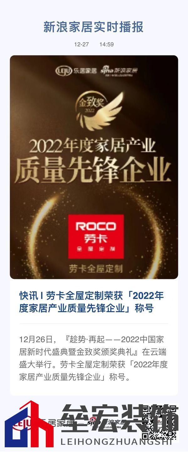 ??12月26日,『趁勢·再起——2022中國家居新時代盛典暨金致獎頒獎典禮』在云端盛大舉行。勞卡全屋定制榮獲「2022年度家居產(chǎn)業(yè)質(zhì)量先鋒企業(yè)」稱號。