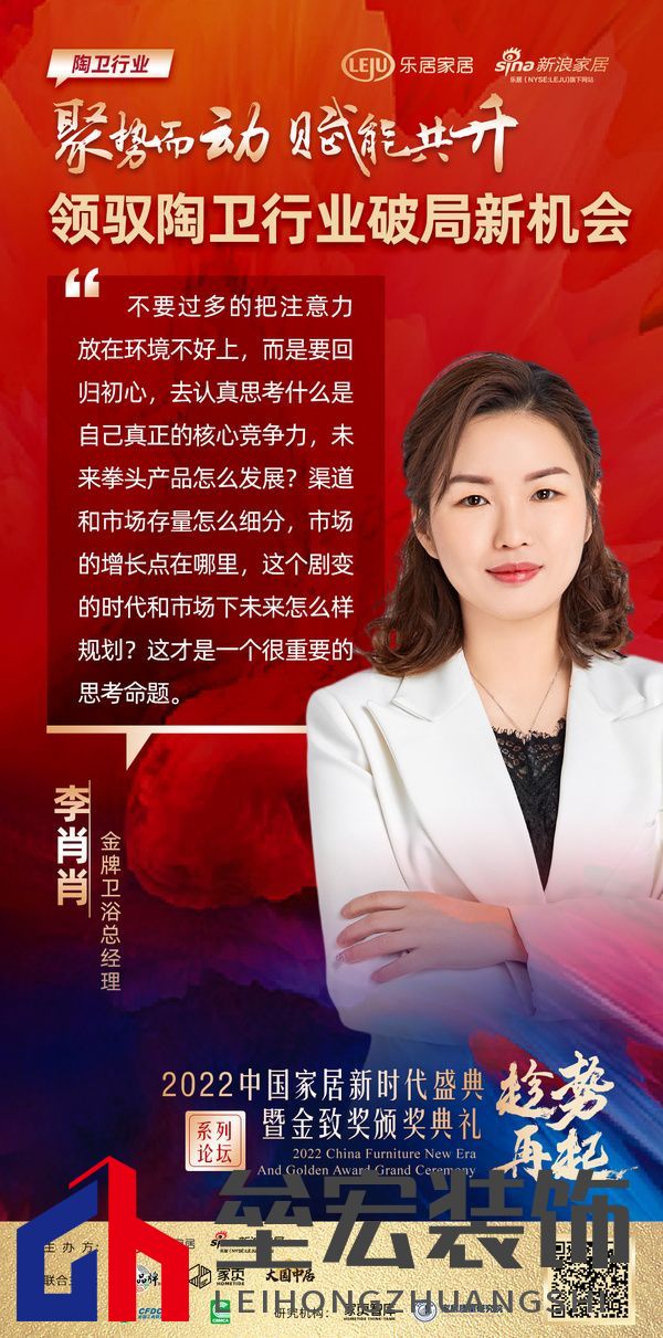 ??12月30日,新浪家居特別舉辦“趁勢(shì) ? 再起——2023中國(guó)家居新時(shí)代盛典暨金致獎(jiǎng)?lì)C獎(jiǎng)典禮”系列論壇,“聚勢(shì)而動(dòng) 賦能共升——領(lǐng)馭陶衛(wèi)行業(yè)破局新機(jī)會(huì)”線上論壇,邀約金牌衛(wèi)浴總經(jīng)理李肖肖、新明珠集團(tuán)明珠科筑總經(jīng)理賈世廣、依諾巖板瓷磚北京分公司總經(jīng)理于記、大元帥巖板副總經(jīng)理馮樹(shù)強(qiáng)一眾陶衛(wèi)行業(yè)優(yōu)秀品牌人、經(jīng)銷商,重新思考、探尋新的破局機(jī)會(huì)。