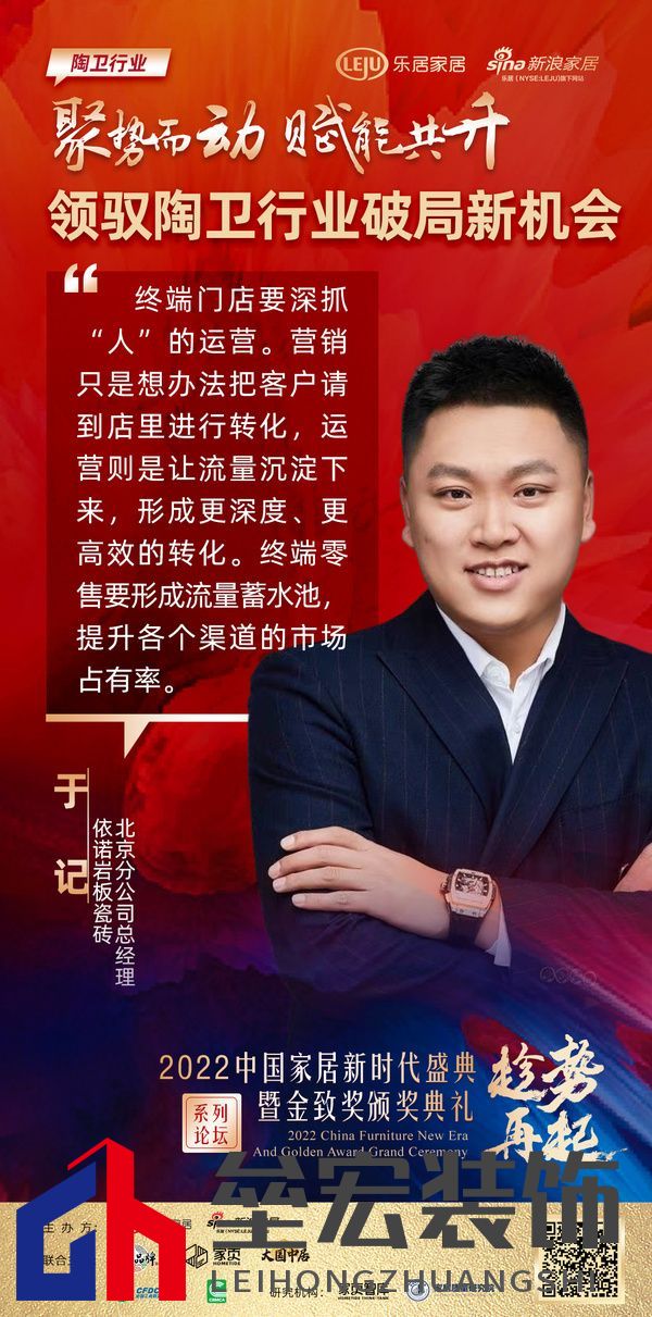 ??依諾巖板瓷磚北京分公司總經(jīng)理于記從終端零售的經(jīng)驗(yàn)開(kāi)始,分享如何破局。在他看來(lái),終端門店要深抓“人”的運(yùn)營(yíng)。營(yíng)銷只是想辦法把客戶請(qǐng)到店里進(jìn)行轉(zhuǎn)化,運(yùn)營(yíng)則是讓流量沉淀下來(lái),形成更深度、更高效的轉(zhuǎn)化。終端零售要形成流量蓄水池,提升各個(gè)渠道的市場(chǎng)占有率。最后,于記總結(jié)道:只有以消費(fèi)者為中心挖掘陶瓷企業(yè)的市場(chǎng)潛力,企業(yè)的向上生長(zhǎng)才更具可能性。