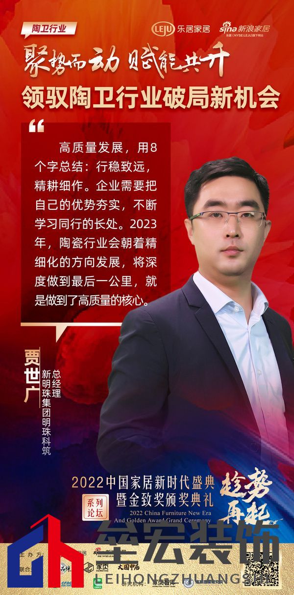 ??陶企要破局首先要考慮陶瓷人的“局”在哪里?新明珠集團(tuán)明珠科筑總經(jīng)理賈世廣首先說(shuō)道,陶瓷人賣了30年的瓷磚,習(xí)慣的流程就是把瓷磚生產(chǎn)出來(lái),判斷花色、工藝適合哪種場(chǎng)景,然后買出去配送給客戶。在整個(gè)銷售過(guò)程中,陶瓷人完全沒(méi)有觸及瓷磚交付鋪貼,這一項(xiàng)服務(wù)是交給第三方來(lái)完成的。這就是陶瓷行業(yè)所要破的“局”。從產(chǎn)品賦能到服務(wù)賦能的跨越,才是破局的關(guān)鍵。談到高質(zhì)量發(fā)展,賈世廣用8個(gè)字進(jìn)行了總結(jié):“行穩(wěn)致遠(yuǎn),精耕細(xì)作”。 2023年,陶瓷行業(yè)會(huì)朝著精細(xì)化的方向發(fā)展,將深度做到最后一公里,就是做到了高質(zhì)量的核心。