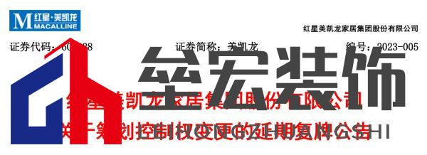 ??新浪家居訊紅星美凱龍家居集團(tuán)股份有限公司1月11日發(fā)布了《關(guān)于籌劃控制權(quán)變更的延期復(fù)牌公告》,宣布公司股票(證券代碼:601828,證券簡稱:美凱龍)自2023年1月11日(星期三)上午開市起繼續(xù)停牌,預(yù)計(jì)停牌時(shí)間不超過3個(gè)交易日,累計(jì)停牌時(shí)間不超過5個(gè)交易日。 ??此前,由于紅星美凱龍家居集團(tuán)股份有限公司(以下簡稱“公司”)控股股東紅星美凱龍控股集團(tuán)有限公司(以下簡稱“紅星控股”)正在籌劃公司控制權(quán)變更事項(xiàng),鑒于該事項(xiàng)存在重大不確定性,為保證公平信息披露,維護(hù)投資者權(quán)益,避免造成公司股價(jià)異常波動(dòng),經(jīng)公司申請(qǐng),公司股票(證券代碼:601828,證券簡稱:美凱龍)于2023年1月9日(星期一)上午開市起連續(xù)停牌兩個(gè)交易日,詳見公司于2023年1月7日披露的《紅星美凱龍家居集團(tuán)股份有限公司關(guān)于籌劃控制權(quán)變更的停牌公告》 ??近日,美凱龍收到紅星控股通知,廈門建發(fā)股份有限公司(600153.SH,以下簡稱“建發(fā)股份”)正就以現(xiàn)金方式意向受讓紅星控股持有的公司不超過30%股份事宜進(jìn)行商討,建發(fā)股份實(shí)際控制人為廈門市人民政府國有資產(chǎn)監(jiān)督管理委員會(huì),該事項(xiàng)或涉及公司控制權(quán)變更。詳見公司于2023年1月9日披露的《紅星美凱龍家居集團(tuán)股份有限公司關(guān)于籌劃控制權(quán)變更事項(xiàng)的進(jìn)展公告》查看詳細(xì)>> ??截至目前,本次股權(quán)轉(zhuǎn)讓尚處于籌劃階段,交易雙方尚未簽署正式的股權(quán)轉(zhuǎn)讓協(xié)議,具體交易方案仍需進(jìn)一步協(xié)商和確定,交易尚存在不確定性。為保證公平信息披露,維護(hù)投資者利益,避免造成公司股價(jià)異常波動(dòng),根據(jù)《上海證券交易所股票上市規(guī)則》、《上海證券交易所上市公司自律監(jiān)管指引第4號(hào)——停復(fù)牌》等有關(guān)規(guī)定,經(jīng)公司向上海證券交易所申請(qǐng),公司股票(證券代碼:601828,證券簡稱:美凱龍)自2023年1月11日(星期三)上午開市起繼續(xù)停牌,預(yù)計(jì)停牌時(shí)間不超過3個(gè)交易日,累計(jì)停牌時(shí)間不超過5個(gè)交易日。 |